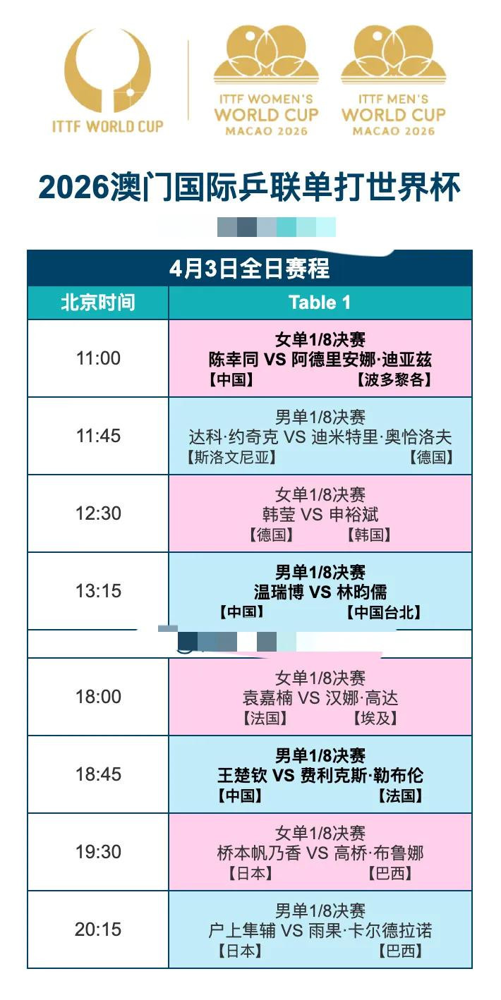 此外,陈幸同交手6次迪亚兹,百分百保持全胜!4月3日比赛对阵及时间安排出炉。