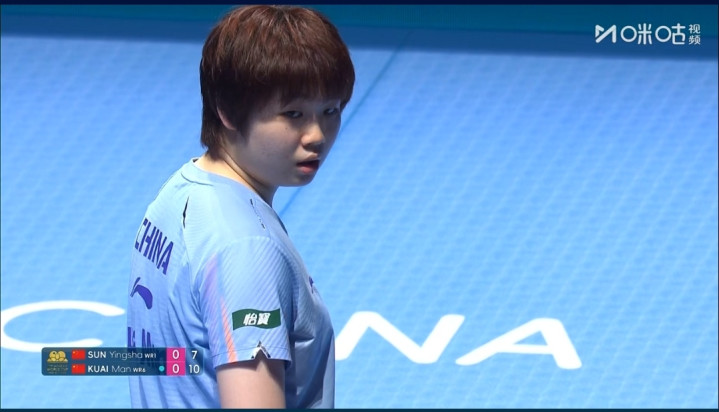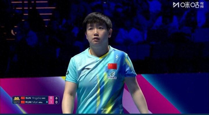 女单八强争夺,赛会的卫冕冠军孙颖莎对阵蒯曼。