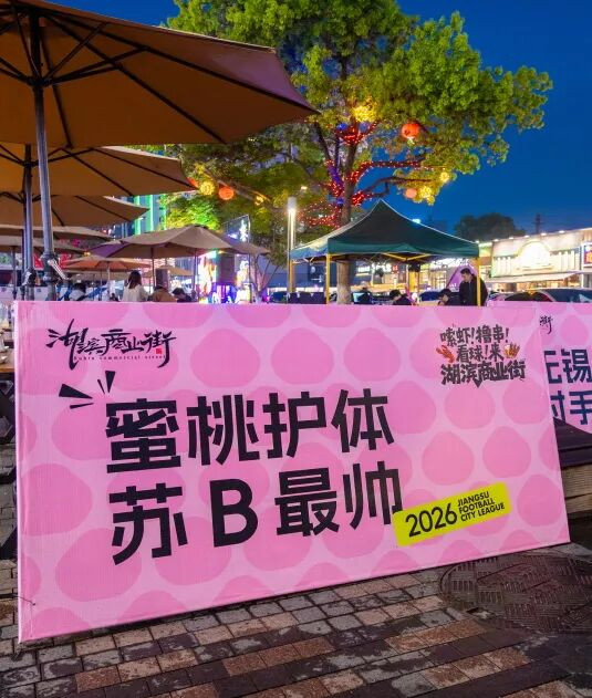 4月11日晚,无锡有雨,气温偏低,湖滨商业街的风里裹着湿意,也带着一点春寒。但当2026年苏超联赛新一轮比赛开场,当无锡队迎来与镇江队的赛季首战,这条街还是亮了起来、热了起来、闹了起来。