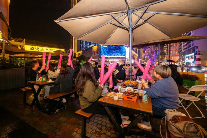 湖滨商业街显然想得更远。这场观赛活动,被设计成了一场可互动、可参与、可社交的线下派对。